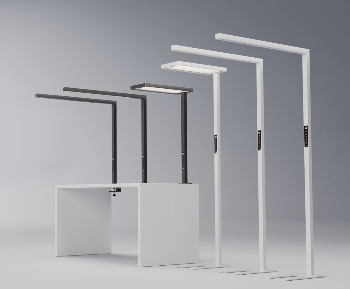 ProLuce® hat eine neue Reihe freistehender Leuchten auf den Markt gebracht, die sich durch minimalistisches Design, eine hervorragende Materialauswahl und Fertigungstechnologie sowie eine reichhaltige Oberflächenstruktur auszeichnen. Für die Beleuchtung von Büroräumen mit unterschiedlichen Schreibtischtypen stehen verschiedene Kombinationen von Lampenkopfdesigns zur Auswahl, darunter Panel-Design, Reflektor-Design und optisches Linsen-Design. So finden Sie unabhängig von Ihrer Büroplanung die optimale Beleuchtungslösung für Ihre Anforderungen.